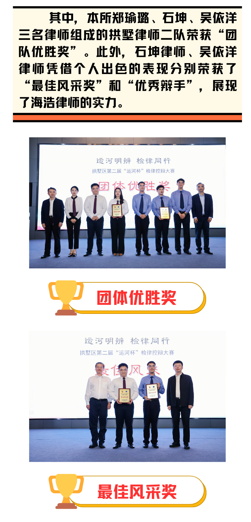海浩动态|“驳论展智,检律交锋”——本所律师在拱墅区第二届“运河杯”检律控辩大赛获得佳绩