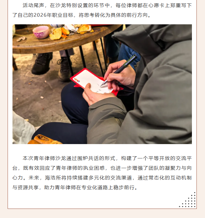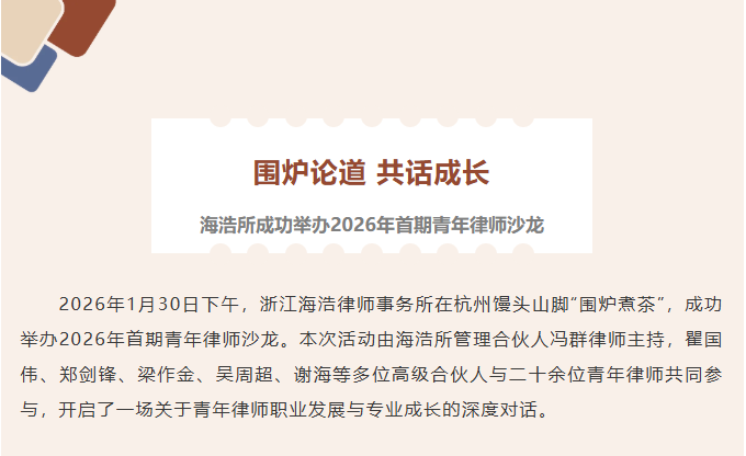 海浩动态|围炉论道,共话成长:海浩所成功举办2026年首期青年律师沙龙